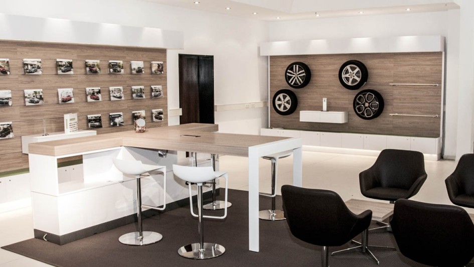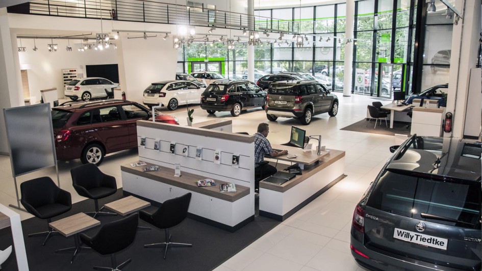 von 4: In den Präsentations- und Verkaufsräumen am Friedrich-Ebert-Damm 128 wurde das aktuellen Corporate Design des tschechischen Autoherstellers umgesetzt.