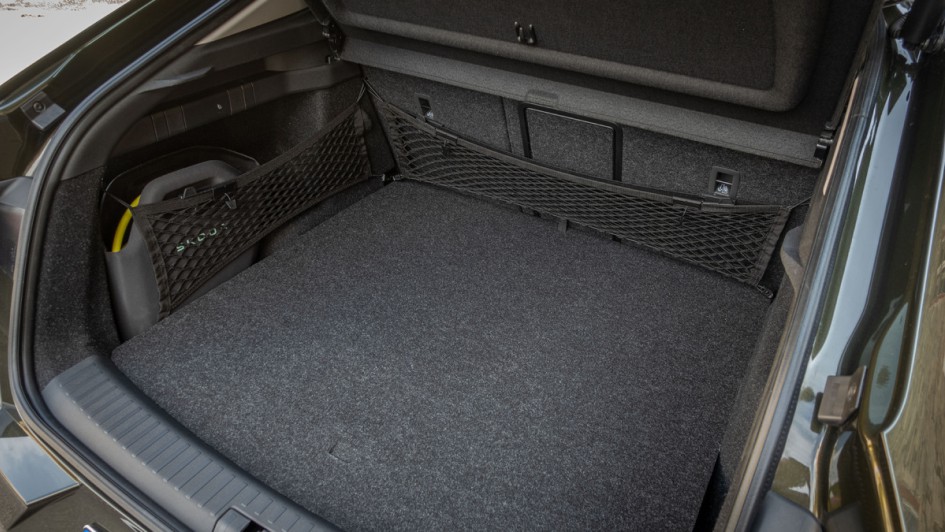 von 24: Ein großer Kofferraum ist stets vorhanden, 570 Liter passen ins Heck des Enyaq Coupés. In das Steilheck können theoretisch 15 Liter mehr eingeladen werden. Eine Netztrennwand (160 Euro), wichtig beim dachhohen Beladen (oder Umklappen), gibt es nur im SUV.