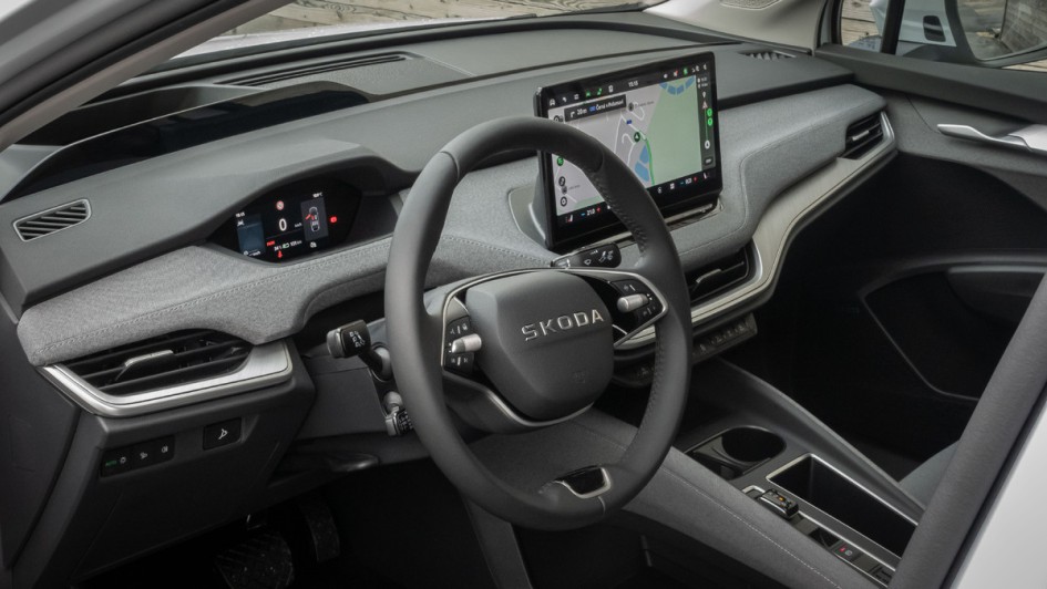 von 24: In der Basisausstattung des Skoda Enyaq fehlen die Paddle am Lenkrad, mit der die Rekuperation in drei "Bremsstufen" justiert werden kann. Beim Enyaq 60 muss das entweder im Menü erfolgen oder mittels Schalthebel und dem dort aktivierbaren B-Modus.
