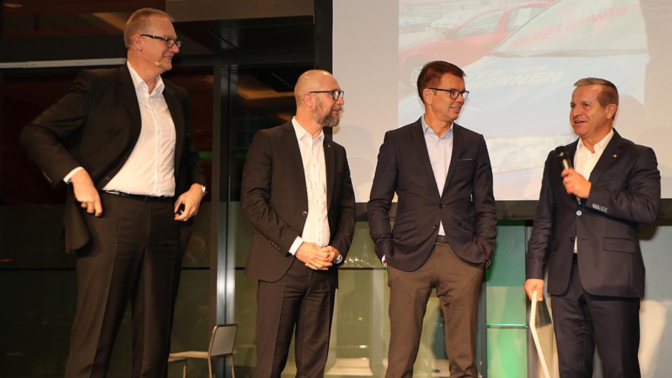von 5: Frank Jürgens, Michael Günther und Stefan N. Quary gratulierten Thomas Peckruhn zum 20-jährigen Jubiläum als Skoda-Händlerverbandspräsident.