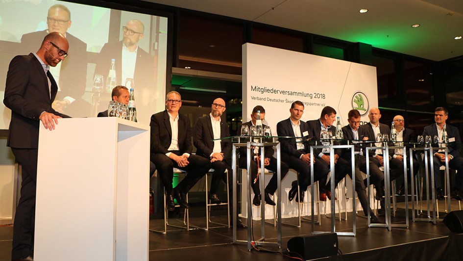 von 5: Führungsspitze des Skoda-Händlerverbands: Kersten Borst, Christian Mette, Thomas Peckruhn, Stefan Schwarzbauer, Jochen Schandert, Jochen Müller, Patrick Kaiser und Christian Melzer (v. l.)