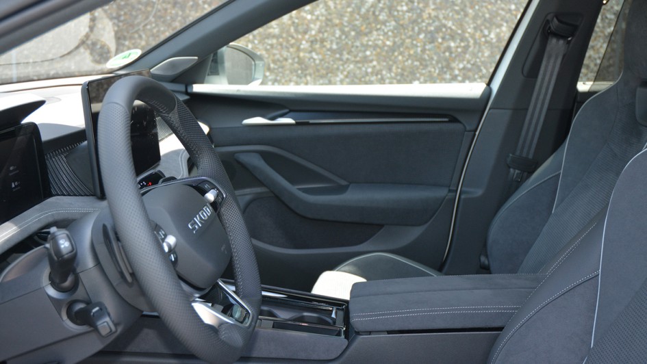 von 12: Blick ins Cockpit des Skoda Superb Combi iV. Das freistehende Infotainmentdisplay misst 13 Zoll, das 10 Zoll große Digital Cockpit Plus zeigt Informationen über dem Lenkrad an.