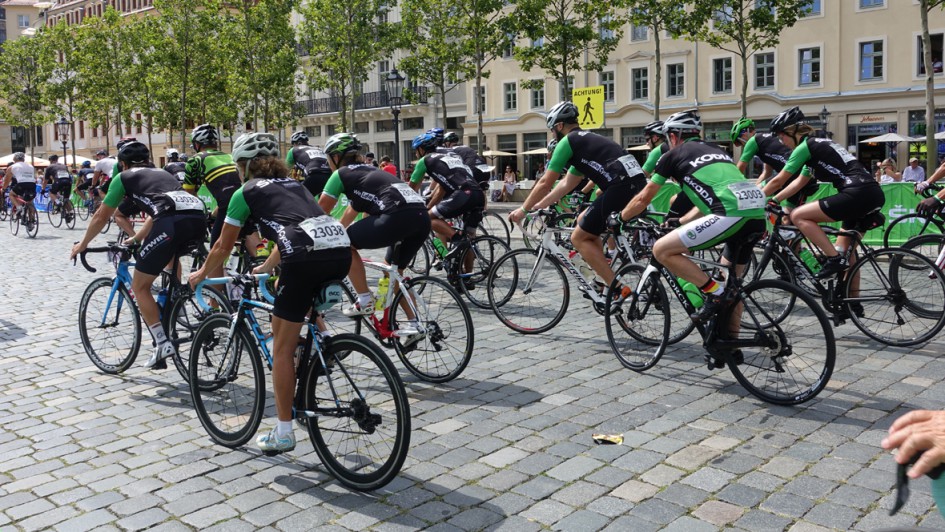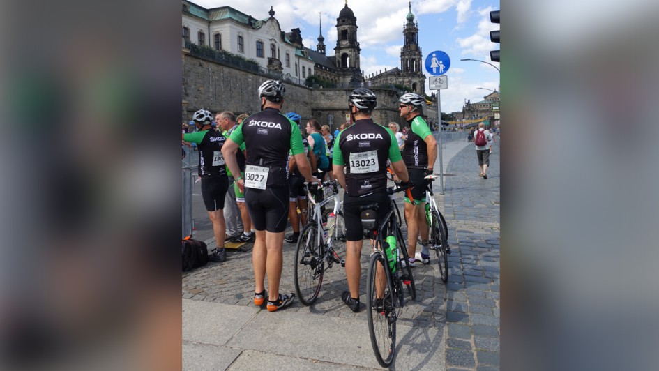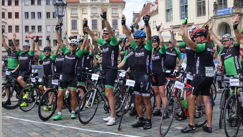 von 5: Ein Teil des AUTOHAUS-Teams mit Hans-Michael Holczer, früherer Chef des Teams Gerolsteiner (2. v. l.), Sylvio Rauschenbach (l.), Autohaus Thomas Rudolph, Oelsnitz, Sarah Keck, Michael Meunzel (3. v. r.), Kosta Mentis (2. v. r.), TÜV Süd, und AUTOHAUS-Chefredakteur Ralph M. Meunzel (r.).
