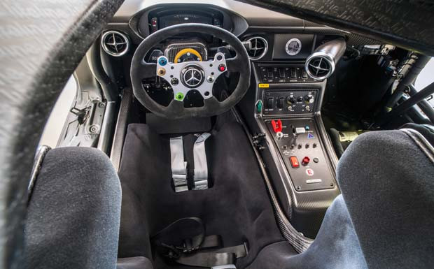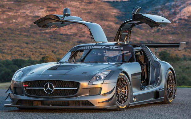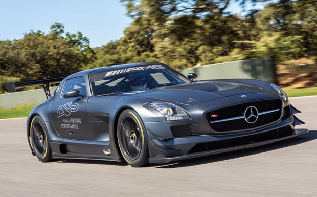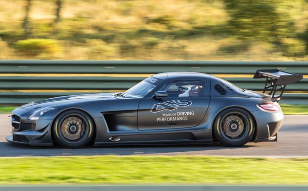 von 5: Der SLS AMG GT3 "45th Anniversary" wird nur in einer Auflage von fünf Fahrzeugen gebaut. Der mattgraue Lack lässt die Betrachtung die Kohlefaserstruktur der Karosserie zu.
