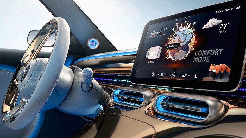 von 10: Zentrales Bedienelement ist der freistehende 3D-Touchscreen mit einer Bildschirmdiagonale von 12,8 Zoll. Ein animierter Avatar unterstützt bei der Bedienung, lernt dank künstlicher Intelligenz die Vorlieben der Nutzer kennen und passt sich diesen an.