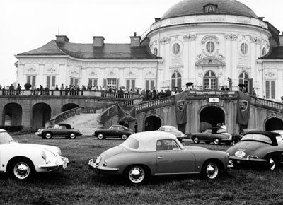 von 6: Das Porsche-Museum würdigt das ehrenamtliche Engagement der Porsche-Clubs mit einer Sonderausstellung. Das Foto zeigt ein Porsche-Treffen in Meran 1958, sechs Jahre nach Gründung des ersten Porsche-Clubs in Nordrhein-Westfalen.
