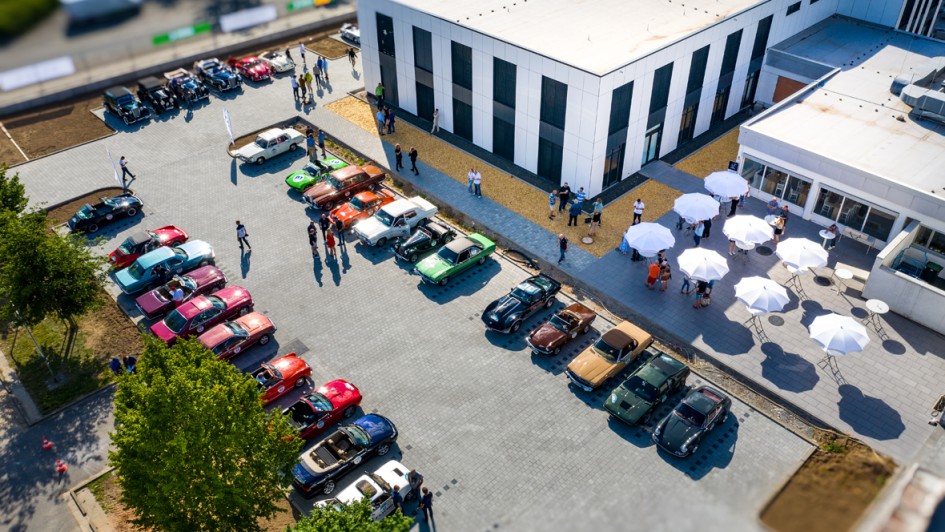 von 10: Erstmals versammelten sich die Teams bereits am Donnerstagnachmittag im eigens für die Rallye errichteten Fahrerlager. Volvo Car Germany stellte sein Competence-Center in Dietzenbach zur Verfügung.