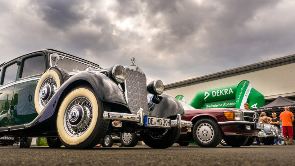 von 10: Das Bild täuscht - die Regenwolken zogen vorüber. Der Wettergott zeigt sich gnädig und beschert viel Sonne. Nach dem Aufkleben der Startnummern ging es zum Dekra-Check und im Anschluss zum Fahrerbriefing.