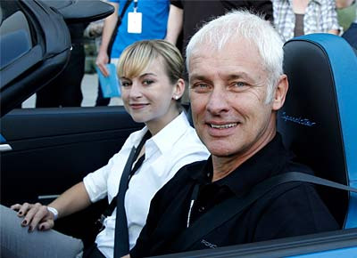 von 13: Porsche-Chef Matthias Müller und seine Frau nahmen im Speedster am Autokorso teil.