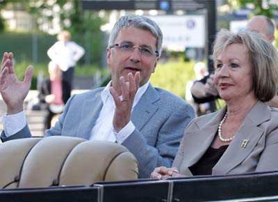 von 13: Audi-Chef Rupert Stadler und Heike Mueller, die Enkelin des Autobauers August Horch, fahren in einem Audi Imperator Baujahr 1929.