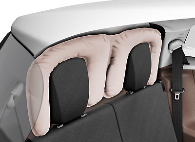 von 12: Neben umfangreichen Sicherheitssystemen besitzt das Mini-Auto serienmäßig neun Airbags, darunter den ersten Heck-Airbag, der die direkt an der Heckklappe liegenden Rücksitze absichert.