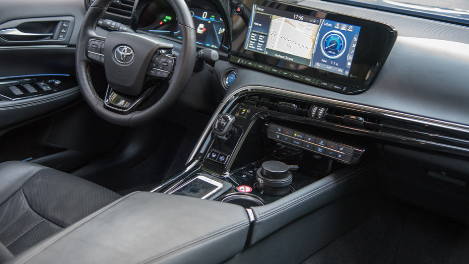von 6: Der Toyota Mirai (heißt: Zukunft) ist ein Langstrecken-Gleiter. Der Fahrkomfort ist hervorragend, die Ruhe entspannend, die Versicherungseinstufung regt dafür auf.