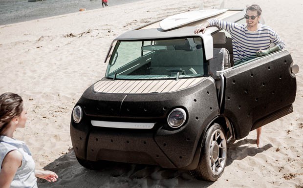 von 12: Das kompakte, 3,44 Meter lange Auto mit der Bezeichnung ME.WE ("Ich und wir") besteht aus einem Aluminium-Gerippe, verkleidet mit geschäumtem Propylen und einem Boden aus Bambusholz.