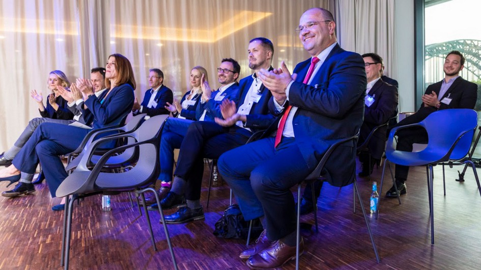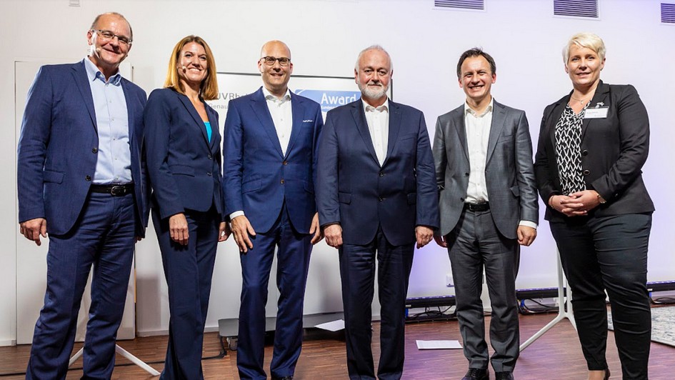 von 12: V.l.n.r.: Ralph M. Meunzel (AUTOHAUS), Sabine Weber, Matthias Schubert (TÜV Rheinland), Karl Hell (Hyundai Deutschland), Thomas Mager und Denise Sterling (beide TÜV Rheinland)