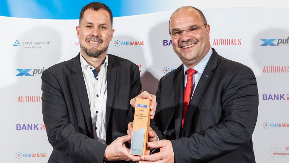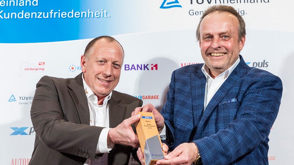 von 12: Dr. Matthias Schubert (r.), als Executive Vice President Mobilität für das weltweite Mobilitätsgeschäft von TÜV Rheinland verantwortlich, und AUTOHAUS-Chefredakteur Ralph M. Meunzel übernahmen die Preisverleihung.