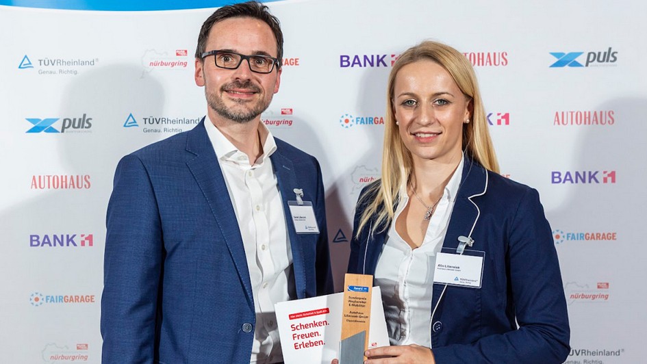 von 12: Erstmals wurde im Rahmen des TÜV Rheinland Awards für Kundenzufriedenheit der Sonderpreis "Wegbereiter E-Mobilität" vergeben. Ausgezeichnet wurde der Betrieb, der sich am konsequentesten auf Elektromobilität eingestellt hat: Daniel und Alin Liliensiek vom Autohaus Liliensiek (Dippoldiswalde)