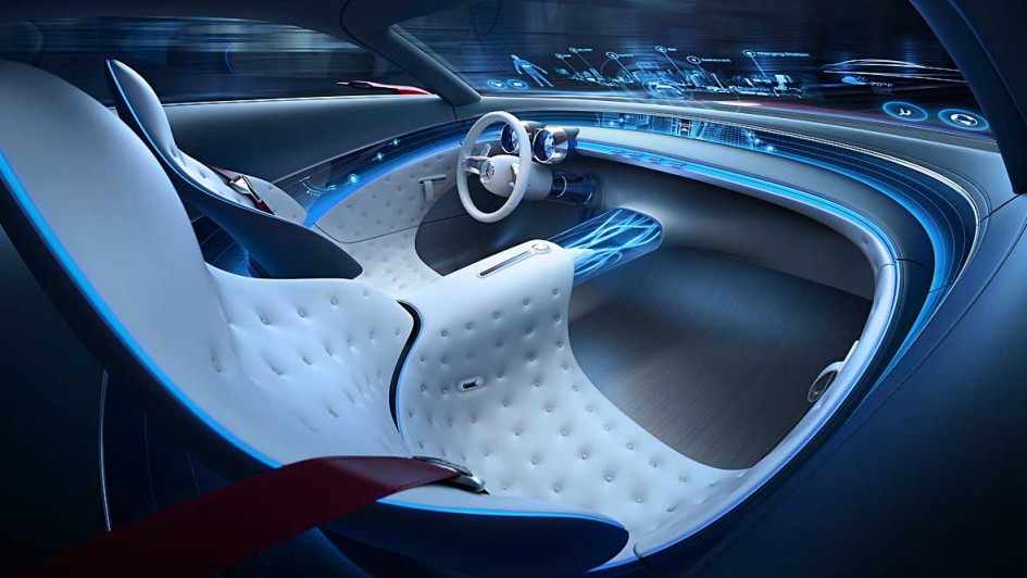 von 13: Das gesamte Cockpit ist ein hinter Kristallglas verborgenes 180-Grad-Display mit Touchfunktion und Gestensteuerung und die Frontscheibe wird bei Bedarf zum transparenten Bildschirm für Navigation und Infotainment.