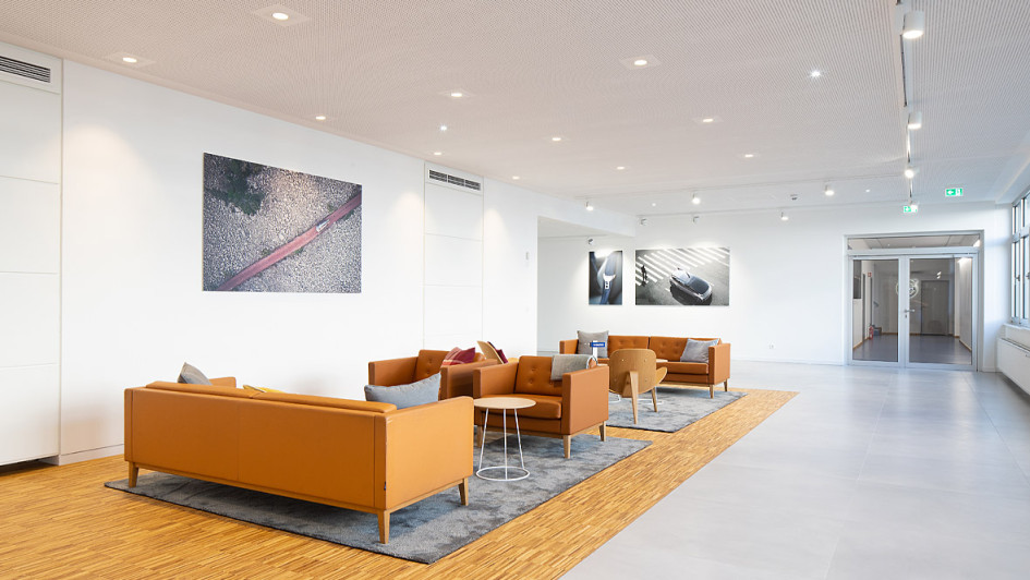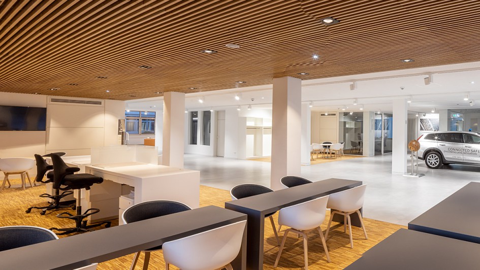 von 9: Herzstück des Areals ist der zweigeschossige Neubau, der auf 3.500 Quadratmetern Bürofläche 185 Arbeitsplätze vorwiegend in Großraumbüros bietet.