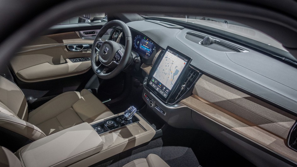 von 22: Natürlich lässt sich ein Innenraum, der eine Kardanwelle umkleiden muss, nicht so luftig-puristisch gestalten, wie das bei Volvos Elektro-Cockpits der Fall ist. Trotzdem wirkt der Vorderbereich des neuen XC90 reduzierter und aufgeräumter.