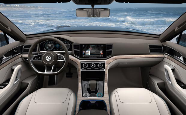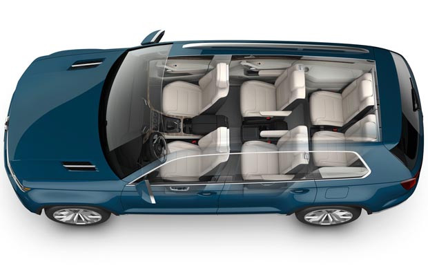 von 7: Konzeptionell soll der mit sechs Einzelsitzen ausgestattete CrossBlue eine Mischung aus SUV und Van darstellen, den ein hoher Fahrkomfort und eine gute Übersichtlichkeit auszeichnet.