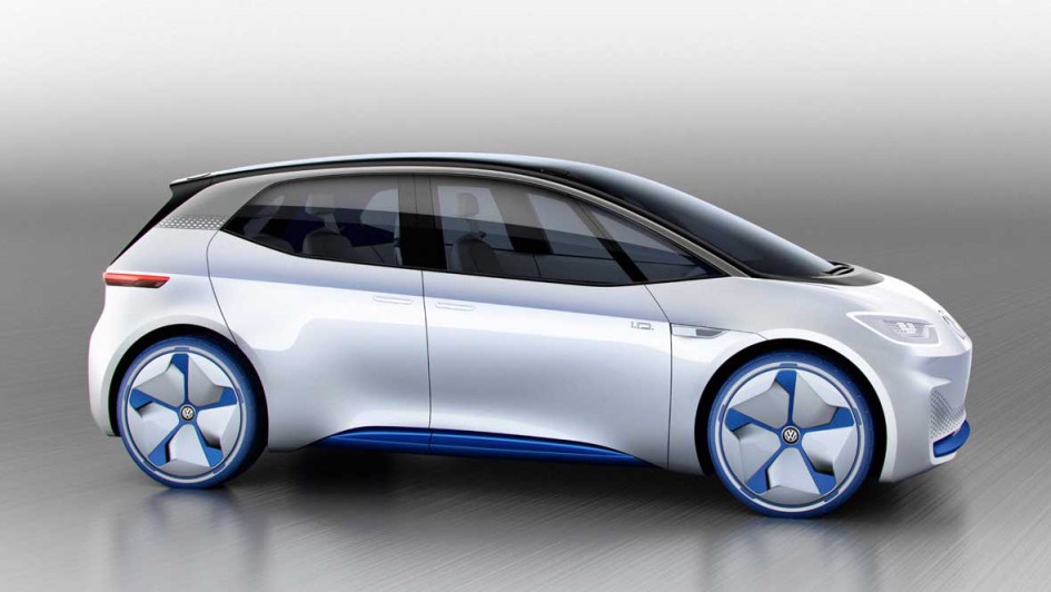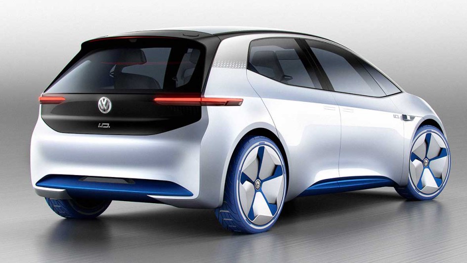 von 9: Auf dem Pariser Autosalon präsentiert VW den Ausblick auf das erste Modell der neuen Elektroauto-Flotte. Schlicht I.D. heißt die Studie, deren gleichnamiges Serienmodell 2020 auf den Markt kommen soll.