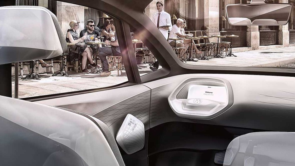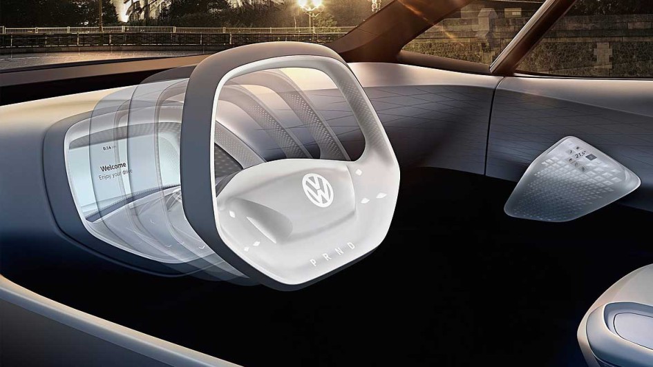 von 9: Das Interieur des I.D. ist sehr luftig gestaltet und mit einem Lenkrad, das in das Cockpit einfährt, bereits für das autonome Fahren gerüstet.