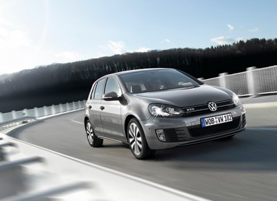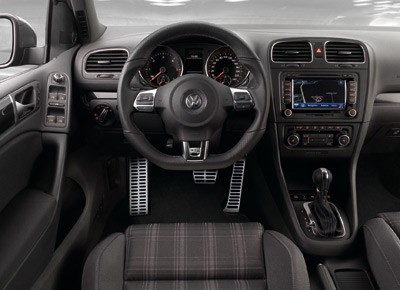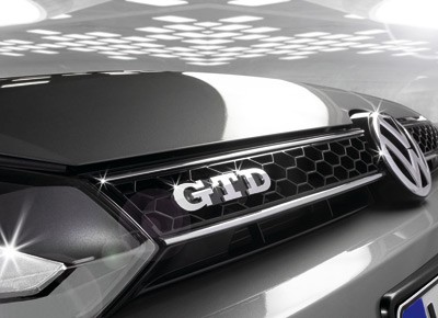 von 7: Zur Basisausstattung gehören ein Sportfahrwerk, 17-Zoll-Leichtmetallfelgen, Sportsitze sowie ein abgeflachtes Drei-Speichen-Lederlenkrad und ein schwarzer Dachhimmel. Von vorne sind GTD und GTI kaum zu unterscheiden. Erkennungsmerkmale der Diesel-Version sind der Schriftzug und die verchromten Querstreifen im Kühlergrill.