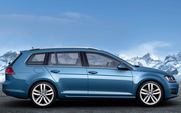 von 12: Von außen ist der Variant als echter Golf 7 zu erkennen. Bis zum Abschluss der vorderen Türen folgt er der scharfen Linienführung des Schrägheckmodells.
