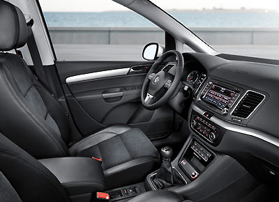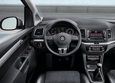 von 8: Serienmäßig verfügt der neue Sharan über sieben Airbags, automatische Fernlichtsteuerung, Bi-Xenon-Scheinwerfer mit LED-Tagfahr- und Positionslicht, die adaptive Fahrwerksregelung (DCC) und eine Niveauregulierung.