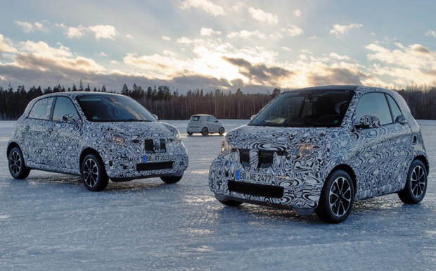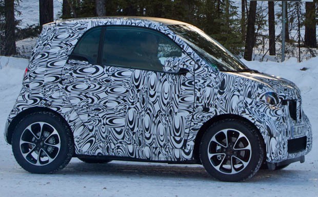 von 4: Obwohl die aktuellen Prototypen noch mit Tarnfolie beklebt sind, kann man als Zaungast bei der Wintererprobung schon erkennen, dass der neue Smart die alten Designmerkmale behält