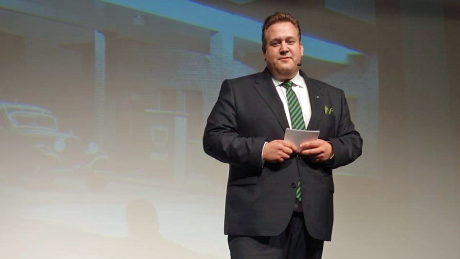 von 15: Timm Ostendorf bei seiner Dankadresse, an seinen Vater Paul, seine Großeltern. In Sonderheit seiner Großmutter Else, die nach dem Tod des Firmengründers Hans 1967 besonderen Mut für das Unternehmen bewiesen hatte.