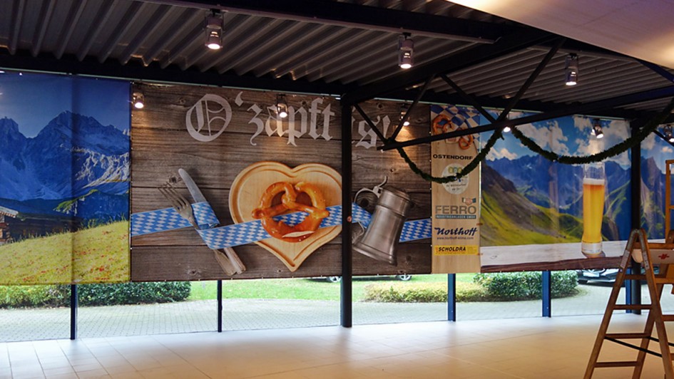 von 15: Seit Montag wird im Showraum der Firmenzentrale am Aufbau für das Oktoberfest gearbeitet, das morgen Abend zusammen mit 1000 Gästen gefeiert wird.