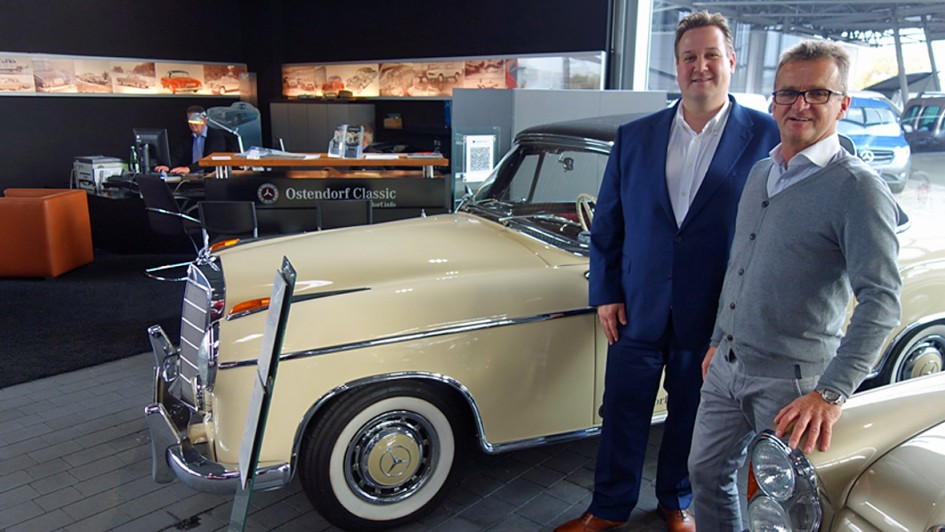 von 15: Ein Abstecher führte uns auch in den MB-Großbetrieb der Ostendorf in Hamm. Dort galt ein besonderer Blick dem Ostendorf Classic-Center. Offensichtlich hatte hier einst Paul Ostendorf sein Hobby zum Beruf gemacht. Im Bild mit Timm Ostendorf und Centerleiter Klaus Gebauer.