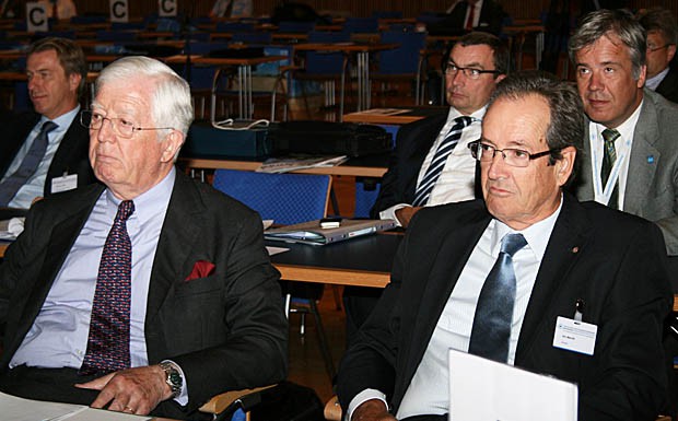 von 16: Aufmerksame Zuhörer beim Internetforum, v.l. ZDK-Präsident Robert Rademacher und der Schweizer Verbands-Präsident Urs Wernli. Im Hintergrund rechts Ralf Scheibach, Jurist VDA.
