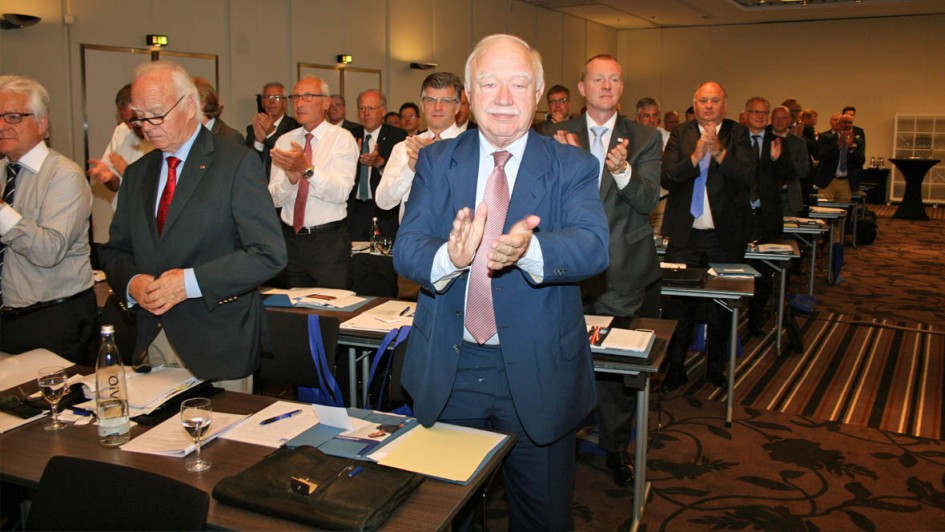 von 8: Bernd Enning (re.) hat jetzt wieder einen Ehrenpräsidenten-Kollegen: Robert Rademacher wurde unmittelbar nach der Wahl von Jürgen Karpinski (Mi.) zum ZDK-Präsidenten zum Ehrenpräsidenten gemacht.