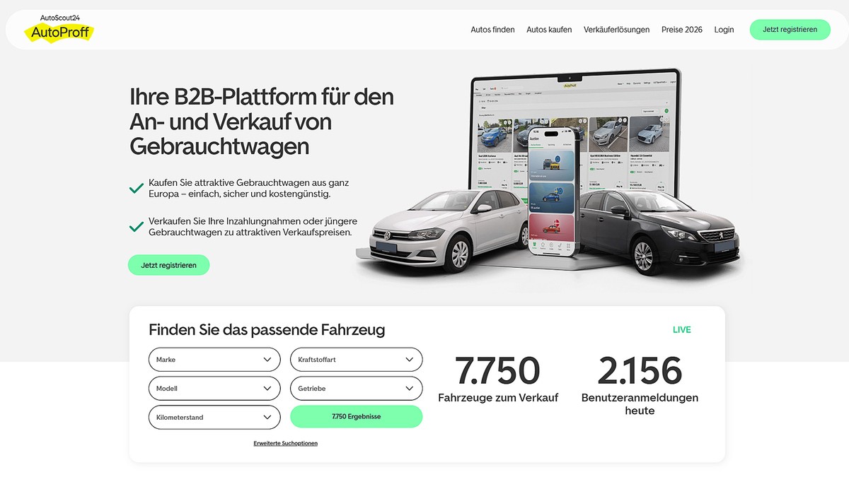 Der B2B-Fahrzeugmarktplatz Autoproff erweitert sein Geschäfsmodell und bietet Händlern ab sofort Blind-Bid-Auktionen an. Das neue Format richtet sich insbesondere an professionelle Einkäufer, die regelmäßig größere Stückzahlen über die Plattform beziehen. Autoproff gehört mehrheitlich zur Autoscout24-Gruppe.